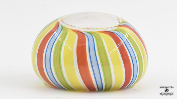 PRESSE PAPIER BOULE AVEC TORSADES DE COULEURS POLYCHROME ET FENETRE EN SON CENTRE